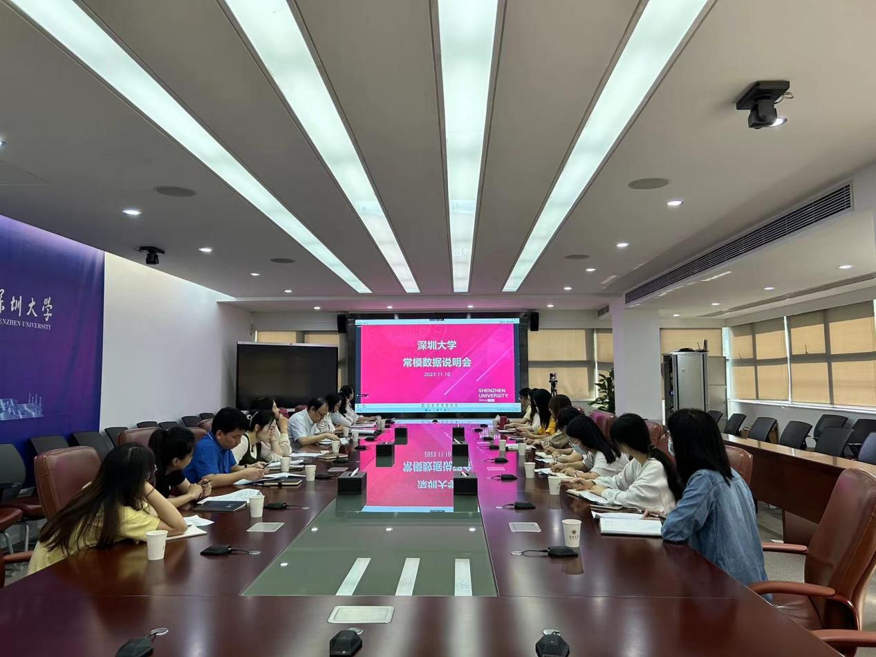 胡翔一首先介绍了常模数据的概况以及近三年来我校状态数据在各指标项上的变化,并结合深圳大学的办学目标和定位,与对标常模的各指标项进行了比较分析。