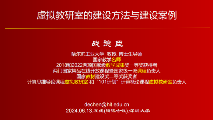 6月13日,教务部教师教学发展中心成功举办了虚拟教研室培训讲座。本次讲座的主讲嘉宾为哈尔滨工业大学二级教授、国家教学名师战德臣教授,主题为虚拟教研室的建设方法与建设案例。讲座由教务部副主任曾明主持,教务部、各学院负责人、基层教学组织负责人及团队成员等近200人参加了本次线上讲座。