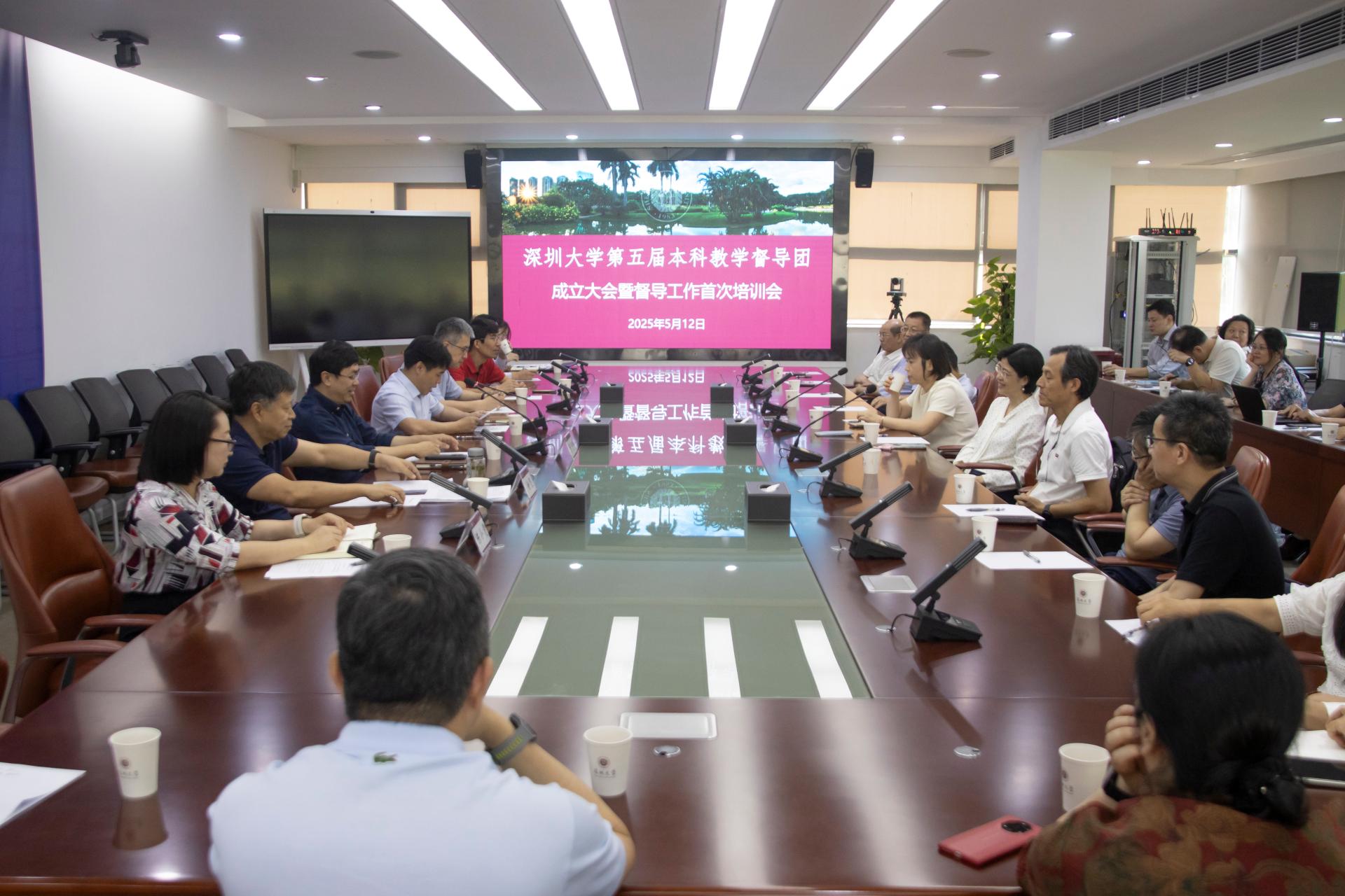 2025年5月12日上午,深圳大学第五届本科教学督导团成立大会暨督导工作首次培训会在粤海校区汇元楼201会议室举行。会议由教务部负责人任祥忠主持,副校长巢乃鹏教授,本科教学督导团部分成员及教务部相关领导同志出席会议,共同见证这一重要时刻。