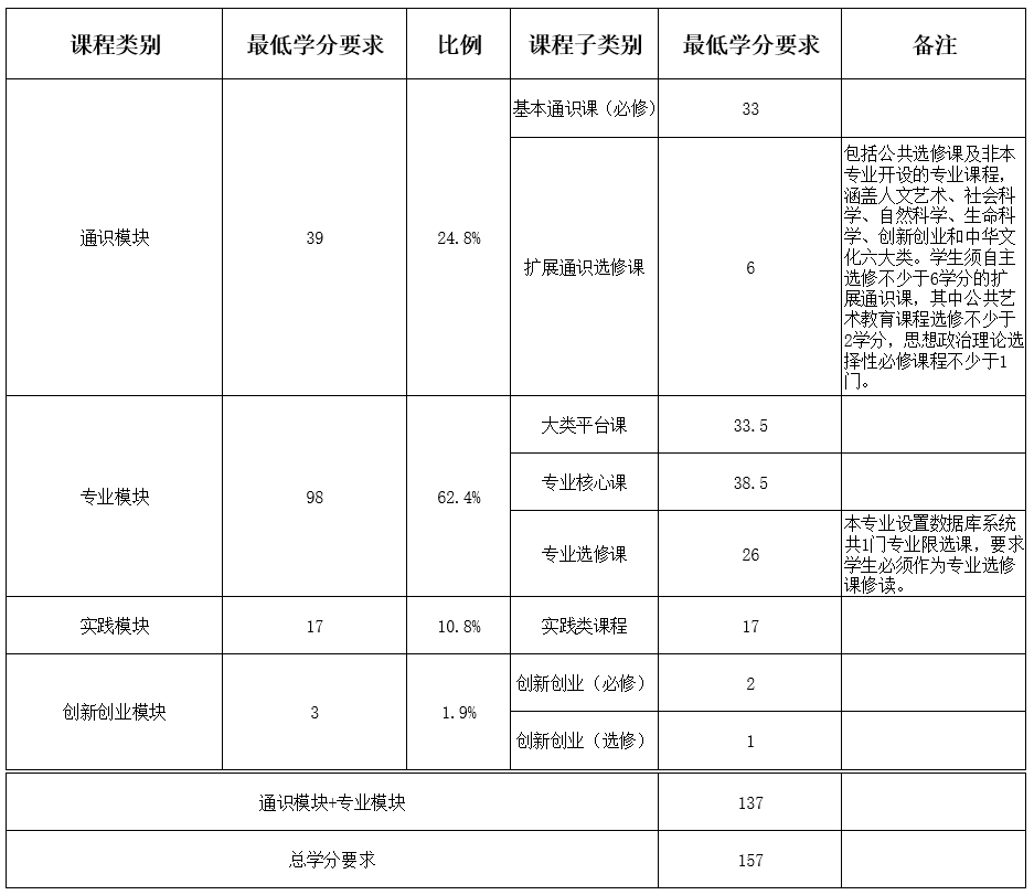 本专业为全日制制四年学习,总学分要求157学分。