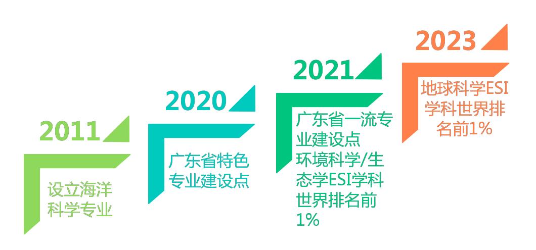 生命与海洋科学学院于2011年设立海洋科学专业,2020年成为广东省特色专业建设点,2021年获批广东省一流本科专业建设点,相关领域ESI学科世界排名前1%(地球科学、环境科学/生态学)。结合深圳海洋产业和科技特点,以“海洋生物资源利用及海洋环境保护”及“海洋防灾减灾”为专业特色,构建“物理海洋-海洋生物-大海洋”的多元化课程培养体系。依托广东省海洋藻类生物工程技术研究中心,深圳市海洋生物资源及海洋生态环境重点实验室,深圳市海洋藻类产业协同创新公共服务平台,围绕前沿技术打造学术、学生、学科、学院一体化发展的高品质互动平台。海洋科学专业教师多次获得获广东省教学成果奖一等奖及二等奖。其中张煜副教授带领的涡虫物种进化分析团队近三年获得“挑战杯”广东省特等奖、全国大学生生命科学创新创业大赛全国特等奖、一等奖、二等奖等10余次。近三年本科学生获省级以上学科竞赛奖励20余人次,发表 SCI 论文近10篇。近期,2019级刘新伟同学获得全国大学生生命科学竞赛(2022,科学探究类)一等奖;2020级张芝颖与2021级包林震等同学作为主要参赛学生,在2022年国际基因工程机器大赛(iGEM)上勇获金奖。多名同学考取包括新加坡国立大学,英国谢菲尔德大学,香港科技大学,厦门大学等知名国内外高校的研究生。2023届继续深造率达45%。就业集中于粤港澳大湾区,包括深圳市海洋发展研究促进中心、广东内伶仃福田国家级自然保护区管理局等涉海事业单位,以及华大基因、深圳市朗诚科技股份有限公司等行业龙头企业。