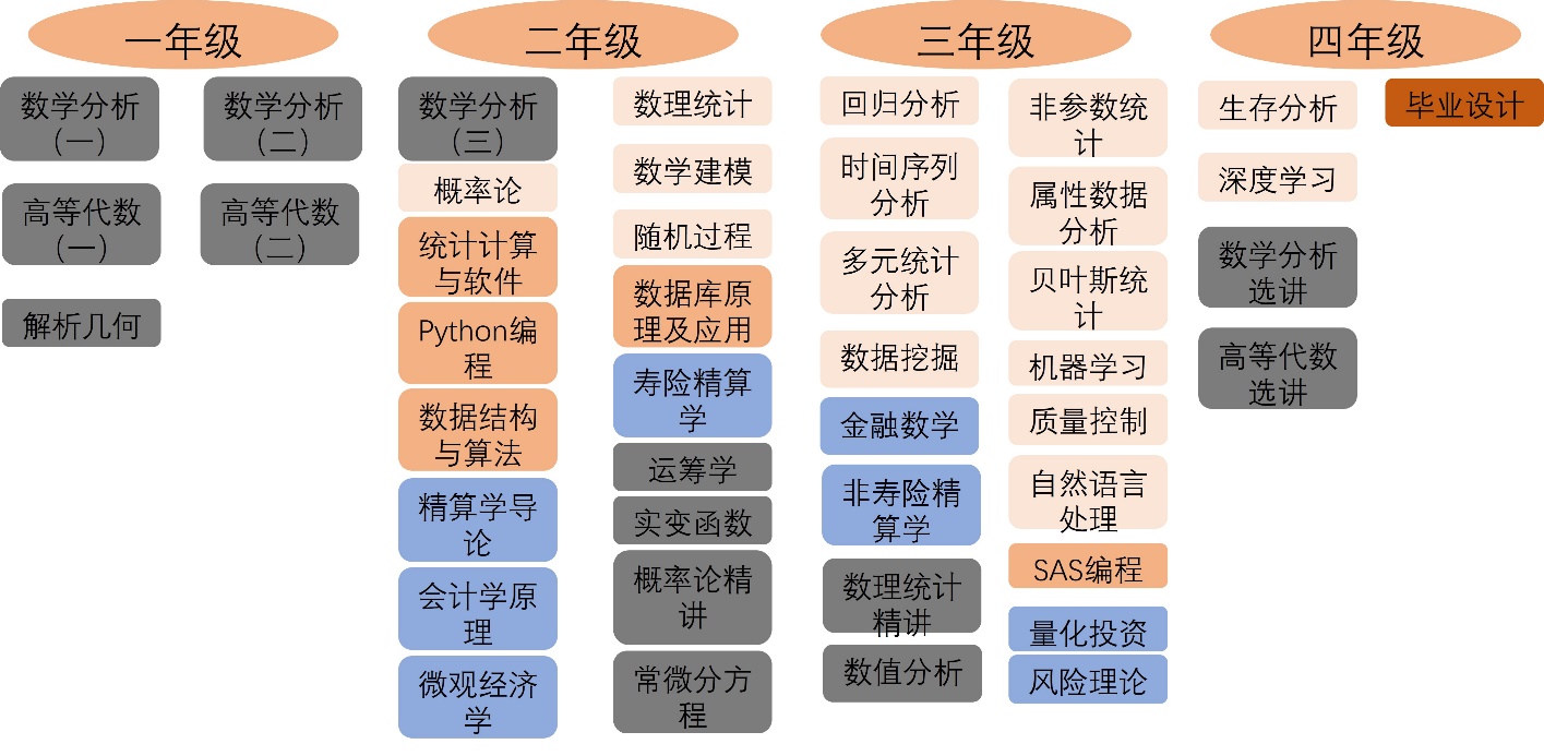 总的来说,统计分析需要复合型的知识体系,主要包括3方面:数理统计、计算机编程和应用领域的背景知识。在这3个方面中,数理统计学是重点和难点。因此,我们的统计学专业以统计理论和应用为核心,强调计算机编程能力,并且以金融学为应用领域的突破点。