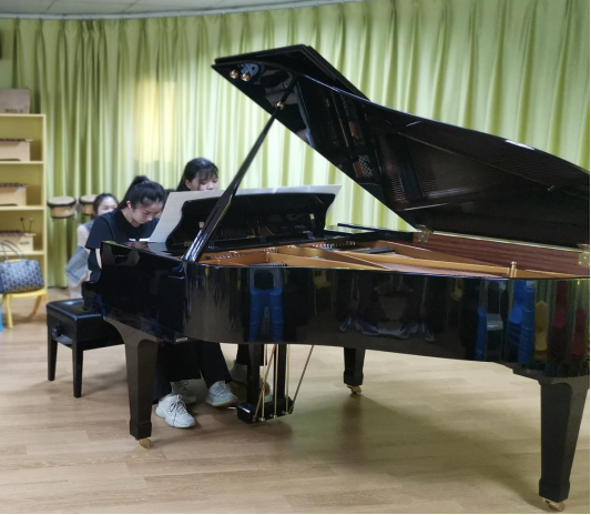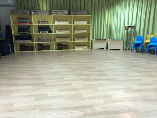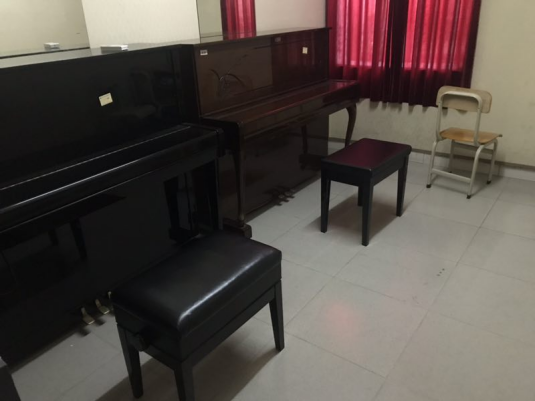 9间琴房,共计20架立式钢琴,1架三角钢琴主要用于四个年级的学生练习钢琴、声乐以及乐器。