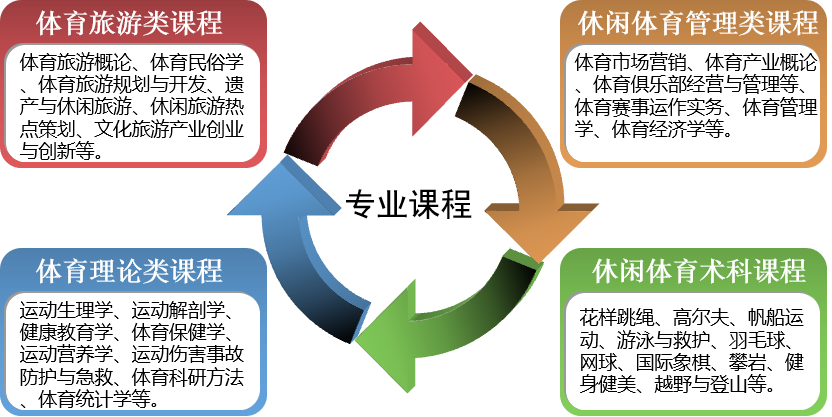 系统掌握体育学基础知识和各个分支学科的专门知识,理解运动技能的有关原理。本专业学生主要学习体育学、休闲学、管理学、经济学、社会学、统计学、计算机技术、外语等现代科学的基础理论和基本知识,休闲体育指导与推广、休闲体育经营与管理、休闲体育项目开发、休闲体育活动设计与策划、休闲体育旅游等休闲体育基础理论知识。